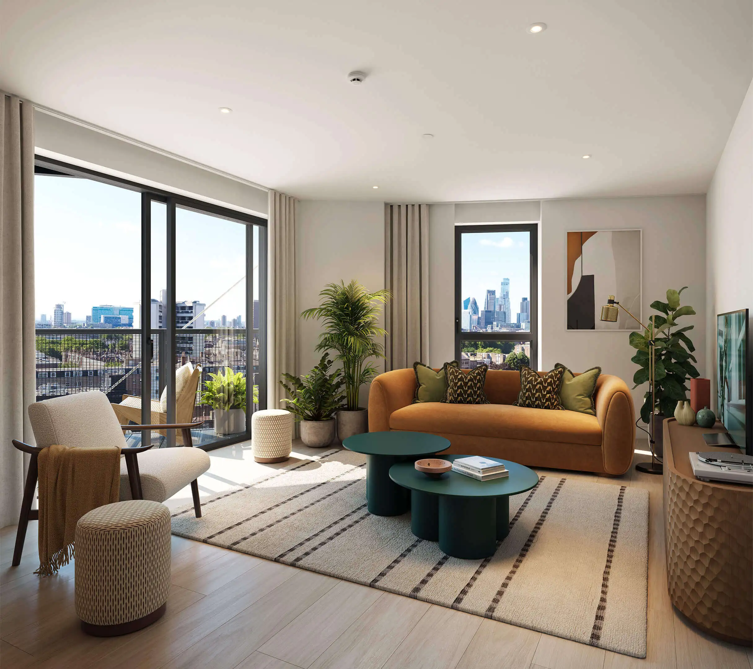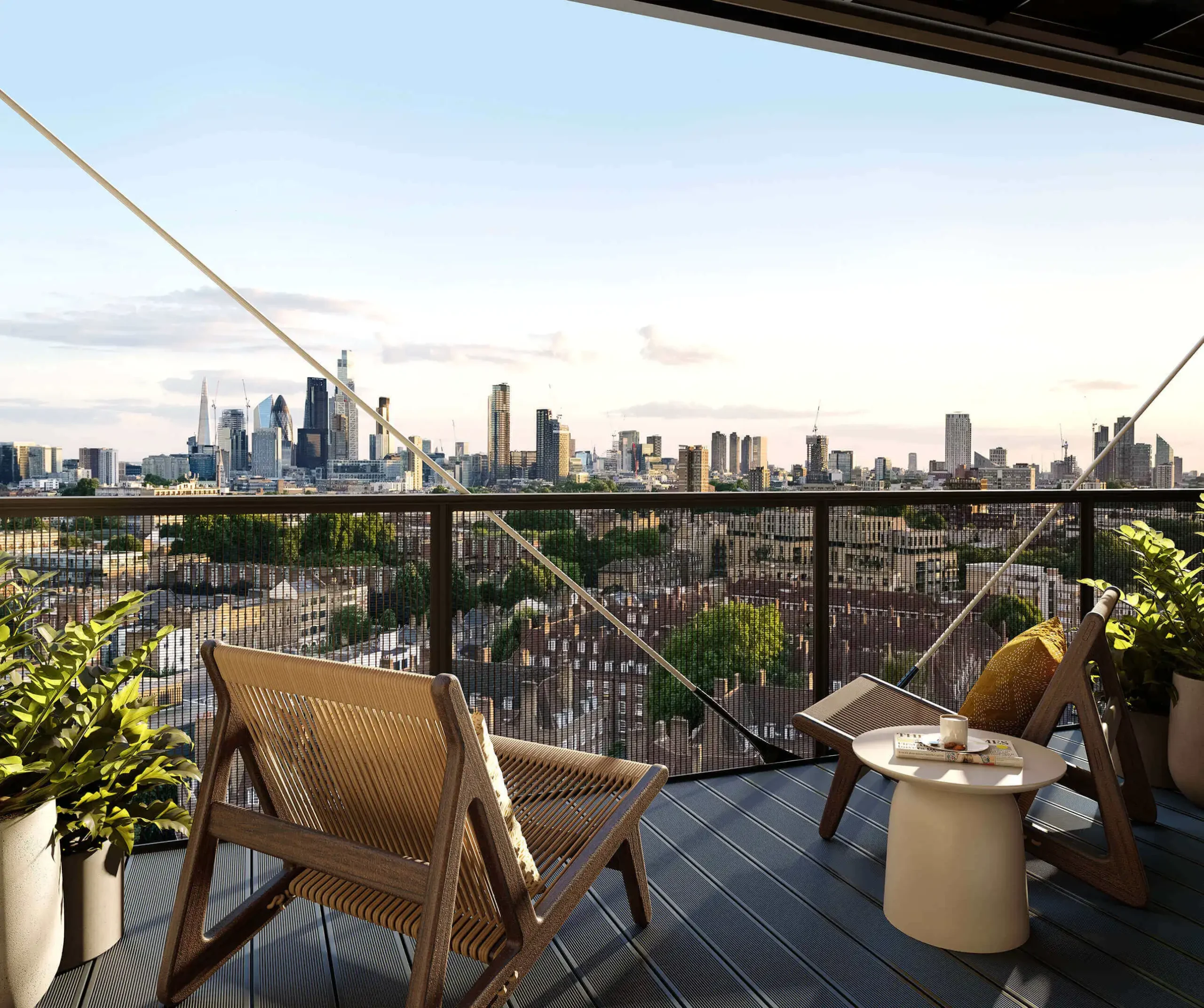 - City and Canary Wharf facing views